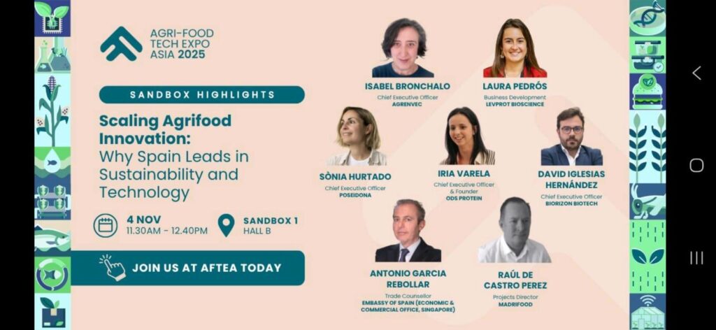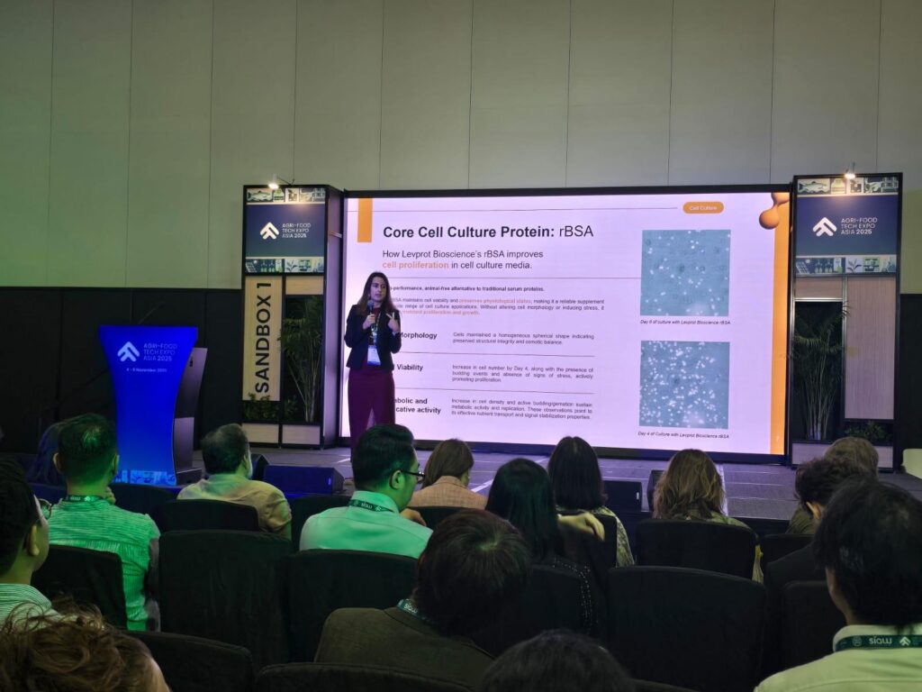 Levprot Bioscience participated in AFTEA, Agri-Food Tech Expo Asia 2025, held in Singapore from November 1–3, where our Business Development representative Laura Pedrós introduced the company’s Cell Culture Supplements line at the Sandbox Stage.